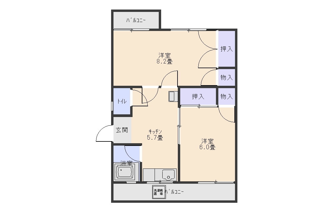 洋室 6.0帖 / 洋室 8.2帖 / K 5.7帖 / |